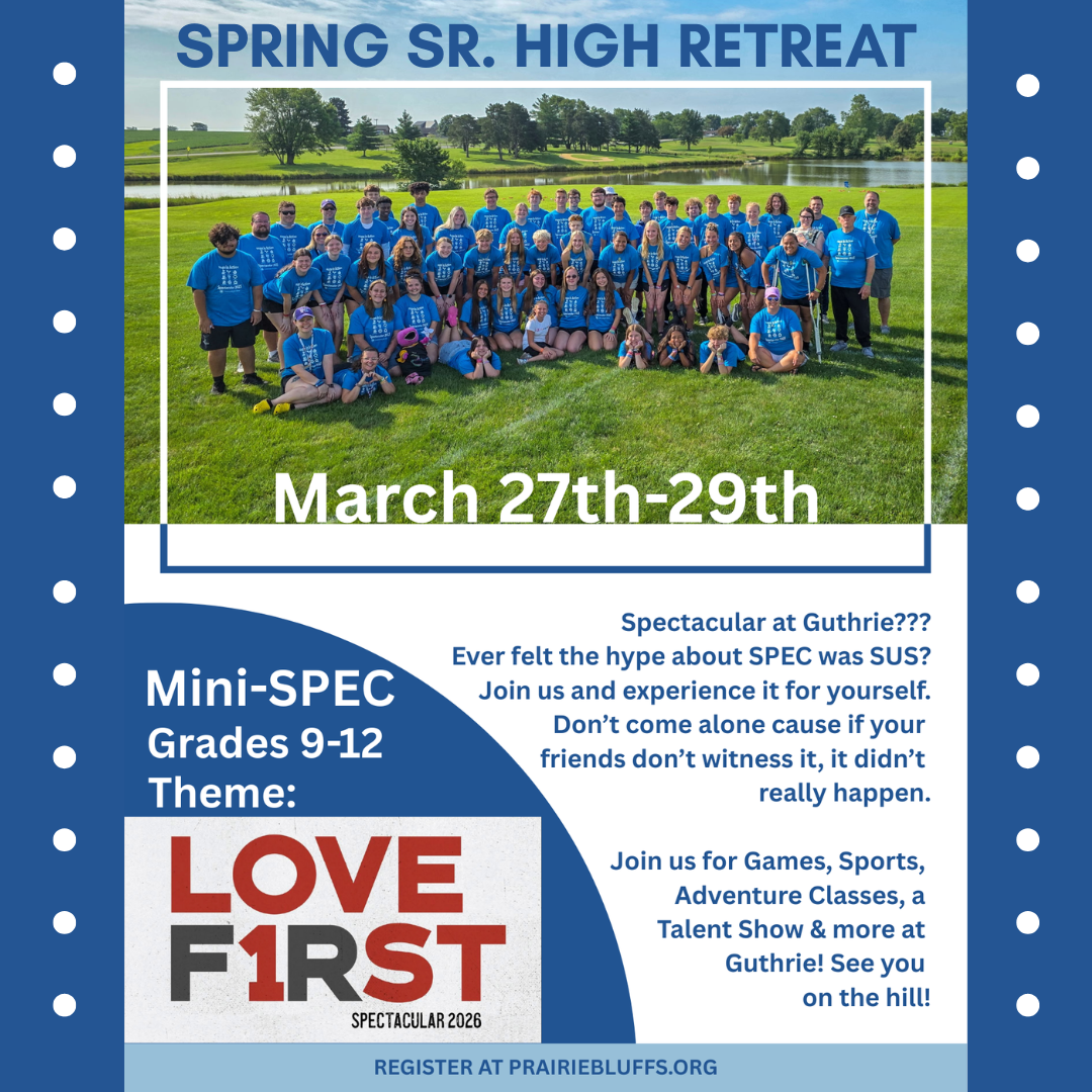 Sr. High Spring Retreat 2026 (Currently in grades 9-12) – “LOVE F1RST” – Mini-SPEC!
